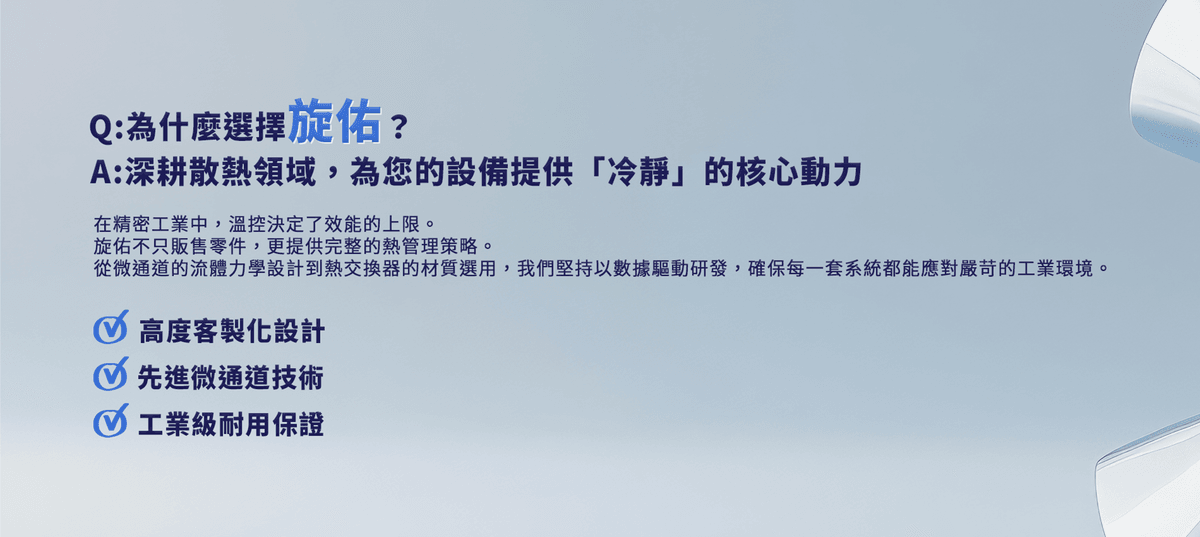 Q1:傳統的水冷系統體積龐大且維護困難,旋佑的「微通道技術」如何幫我們解決空間與效能的矛盾?